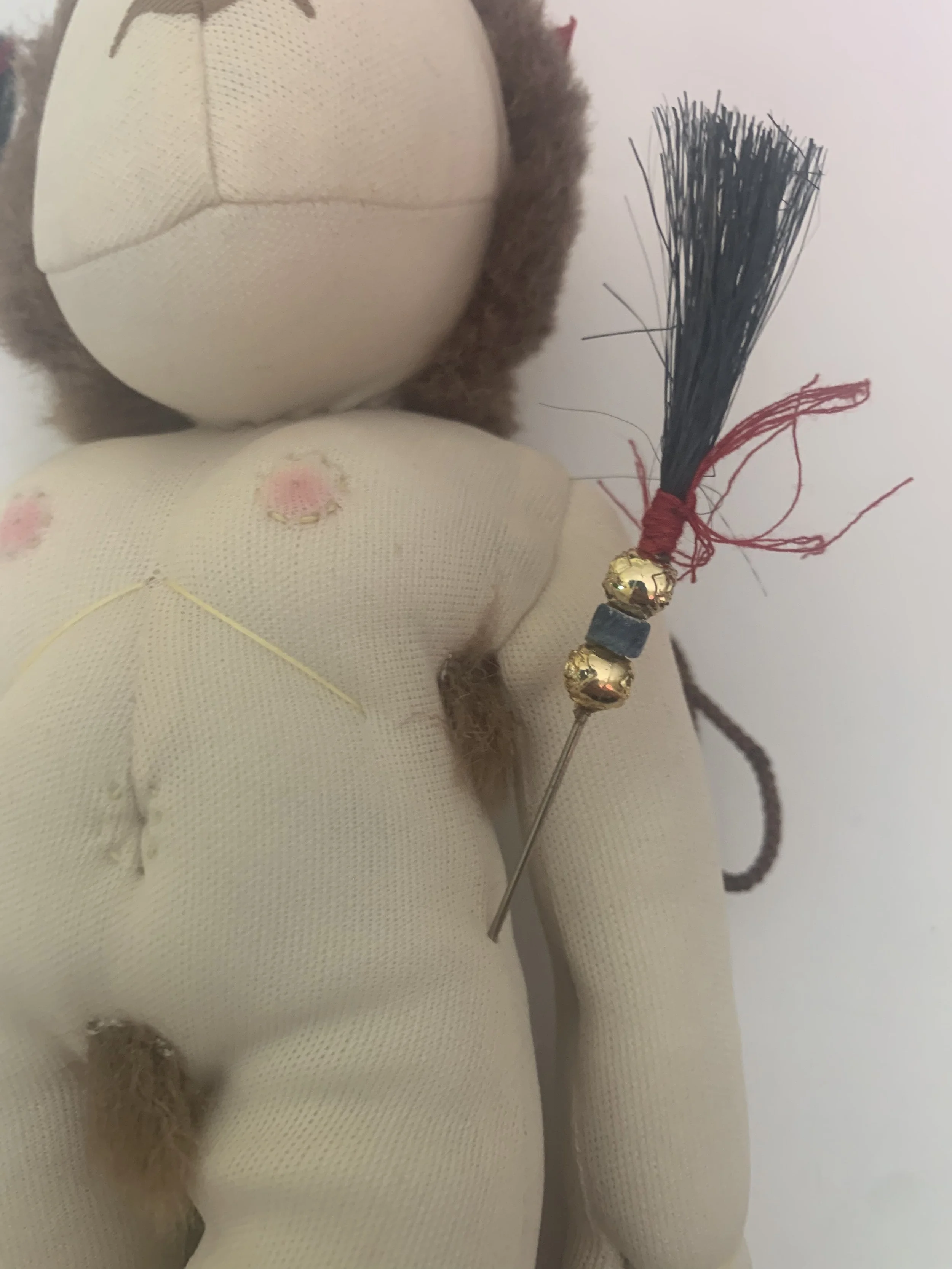 Each doll comes with 2 pins that you pierce the doll with to inflict pain/your curse/whatever on your victim. This whole gag is like someone’s private joke gone public. It’s genius and whomever took it to this level had the funds to back it up. I am currently in possession of 22 dolls, only 5 males and the rest are female. Here’s a look at this highly detailed beauties.